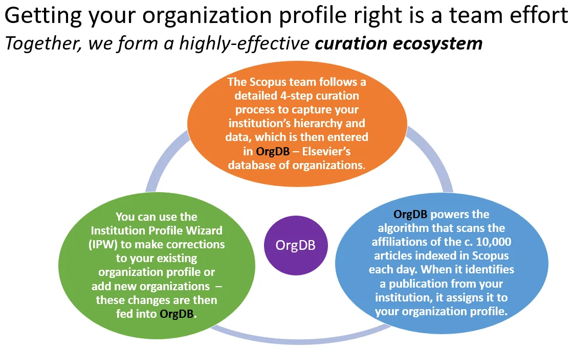 It is a complete picture of your organization’s scholarly output. Developing a profile is a joint effort.