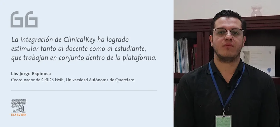 Ello lo conoce bien el Lic. Jorge Espinosa, responsable de la Biblioteca en la Universidad Autónoma de Querétaro, donde, a través de acciones concretas coordinadas con la Facultad de Medicina, logró mostrar el valor y la importancia de tener herramientas como ClinicalKey para la docencia, el aprendizaje y la práctica clínica