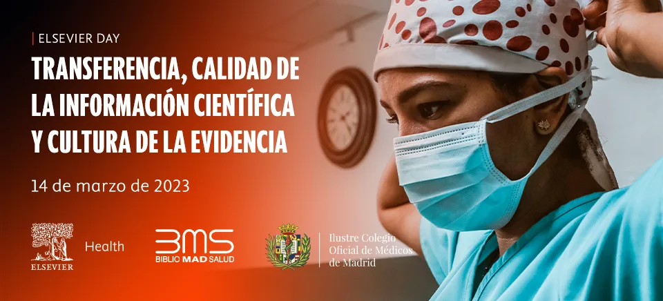 Elsevier, BiblioMadSalud y el Ilustre Colegio Oficial de Médicos de Madrid (ICOMEM) celebrarán la jornada 'Transferencia, calidad de la información científica y cultura de la evidencia' el próximo 14 de marzo. Esta cita podrá seguirse de manera presencial (sede del ICOMEM) o telemática. La primera sesión se desarrollará entre las 12:00 y las 14:30 horas. La segunda, entre las 16:00 y las 18:30. Toda la información pueden encontrarla aquí: Agenda y horarios