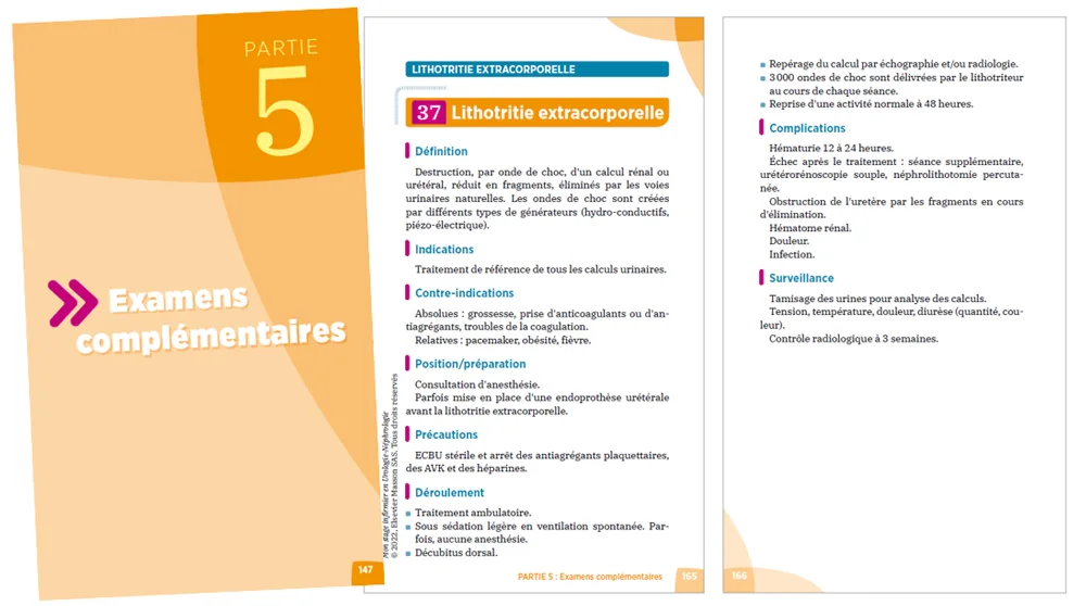 Conçus par des Infirmiers et médecins, les ouvrage comportent au moins 6 parties, voire 7 pour certaines spécialités (partie supplémentaire Sémiologie pour Neurologie par exemple) :