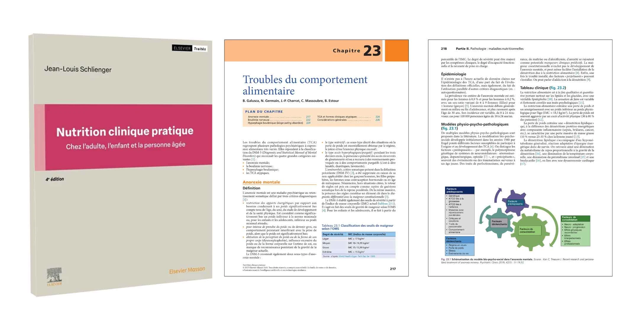 Nous vous invitons à découvrir l'Anorexie mentale dans le chapitre 23 Troubles alimentaires de la partie II Pathologie : maladies nutritionnelle de l'ouvrage Nutrition clinique pratique chez l'adulte, l'enfant et la personne âgée.