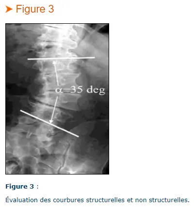 courbe structurelle : l’angle de Cobb reste supérieur à 25° sur les radiographies en flexion latérale ;