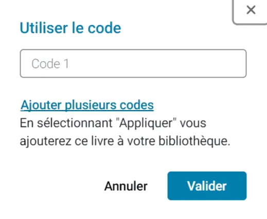 Vous entrez ce code pour ajouter l'eBook à votre bibliothèque.