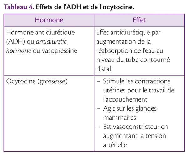 Le lobe postérieur ou neurohypophyse ou post-hypophyse stocke l'hormone antidiurétique (ADH) et l'ocytocine (deux hormones produites par l'hypothalamus), d'où elles seront sécrétées (tableau 4).