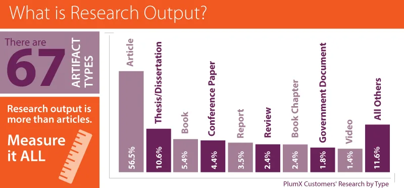 When talking to a new customer during the implementation process, one of the very first questions we ask is, “What do you consider to be research output?” Of course, PlumX gathers robust research metrics around scholarly journal articles, but research output is so much more.