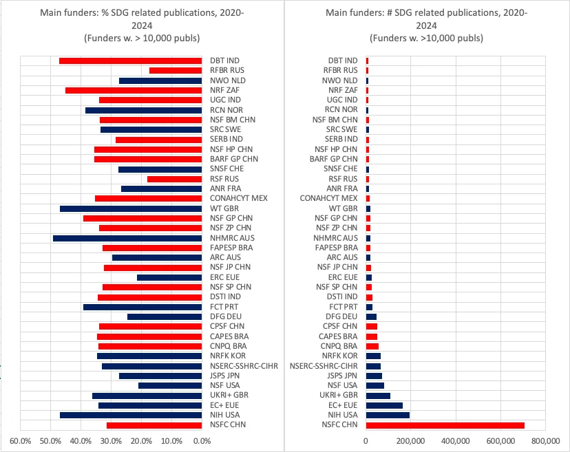 As an example, the chart above shows that the NSFC in China supports research related to SDG 7 (Clean and affordable energy) at an intensity that is 50% above the World average.