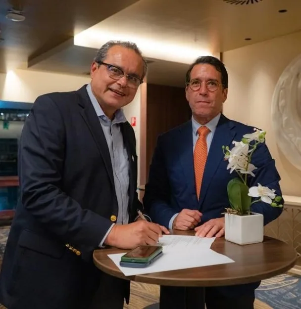 Eugenio García, Vicepresidente de Elsevier Health y Dr. Alfredo Guerreros celebran la firma de ClinicalKey AI