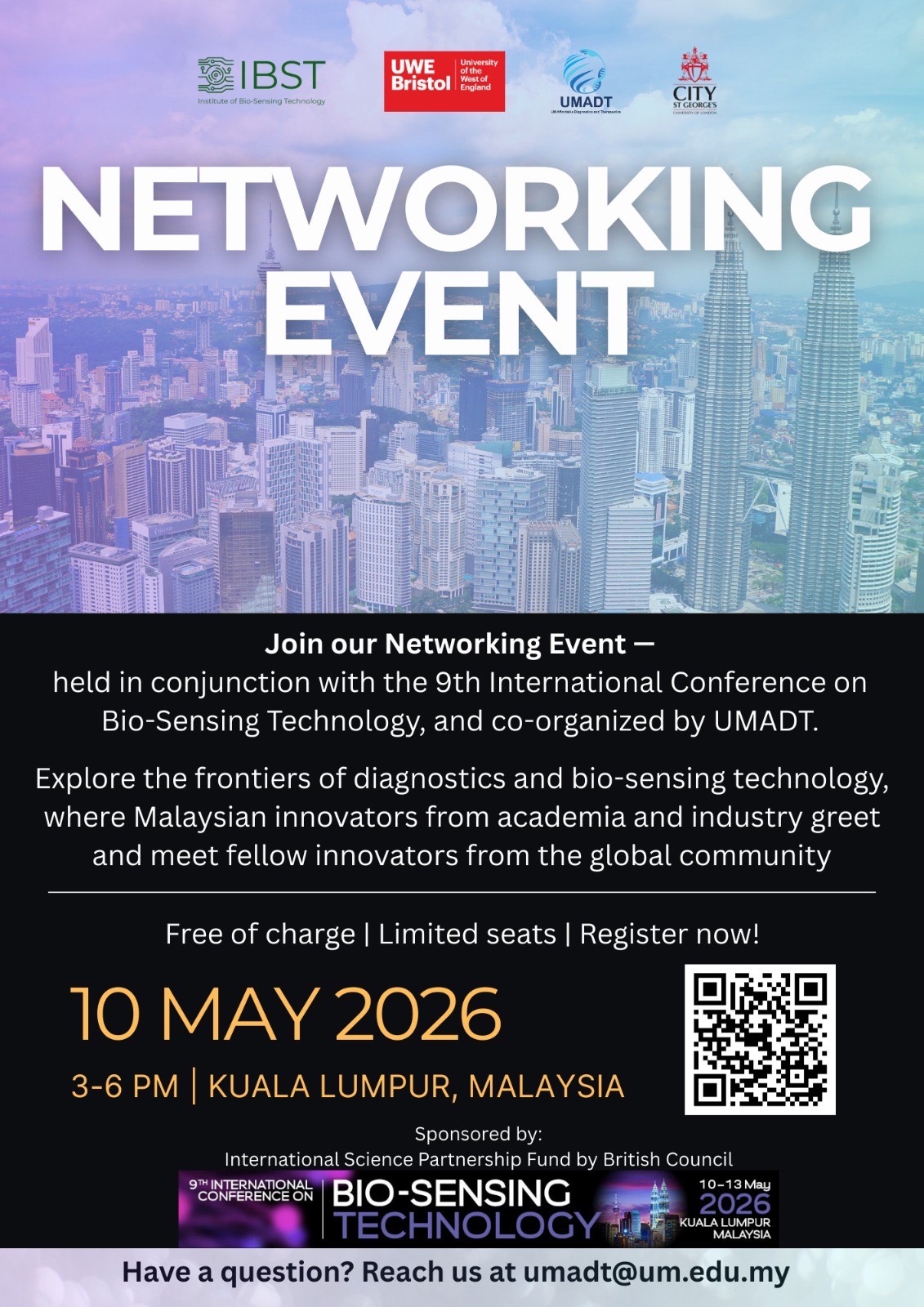 This is a fantastic opportunity for the global community to meet with Malaysian researchers and companies working in the bio-sensing technology space. Use this opportunity to grow you network and find possible collaborators for future projects. Meet fellow researchers, share ideas and discover the latest technology being manufactured in Malaysia.