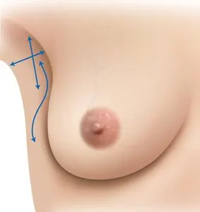 L’incision axillaire horizontale limite le risque de rétraction axillaire.