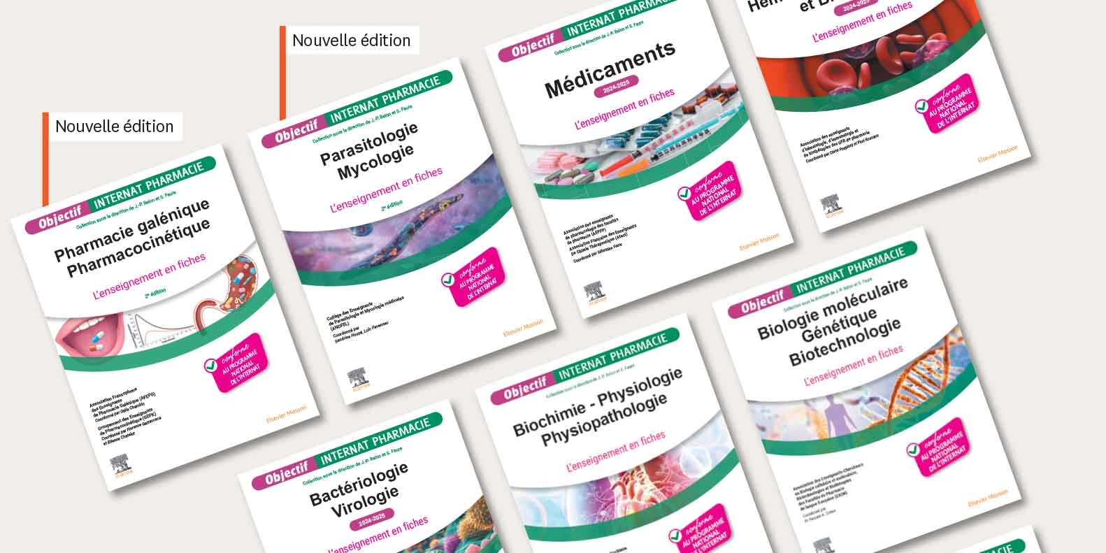 La nouvelle collection Objectif Internat Pharmacie est destinée aux étudiants de 4e et 5e années de pharmacie. L’objectif de ces ouvrages est de proposer à l’étudiant des fiches apportant de façon condensée tous les éléments nécessaires pour une préparation réussie au concours de l’internat en s’appuyant sur les connaissances habituellement demandées dans les questions posées à l’examen : QCM, exercices, dossiers biologiques et thérapeutiques.